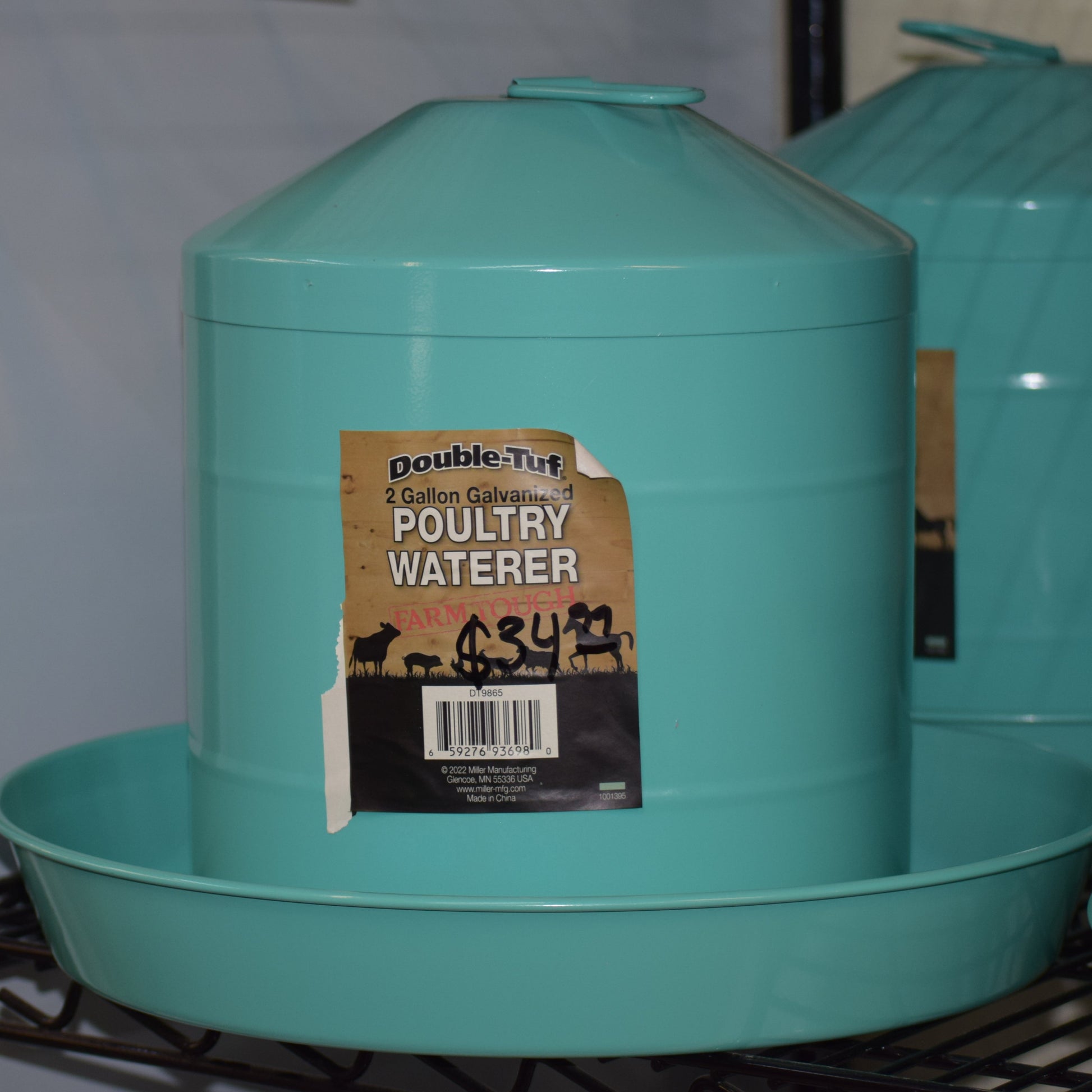 Double Tuf 2 Gal Galvanized Poultry Waterer - Teal
