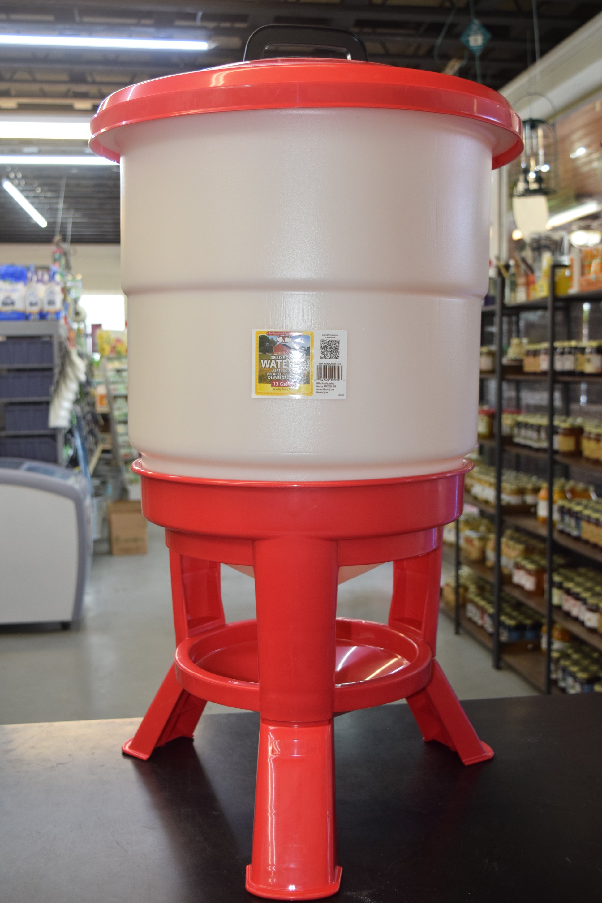 - Larger capacity poultry waterer accommodates up to 40 chickens