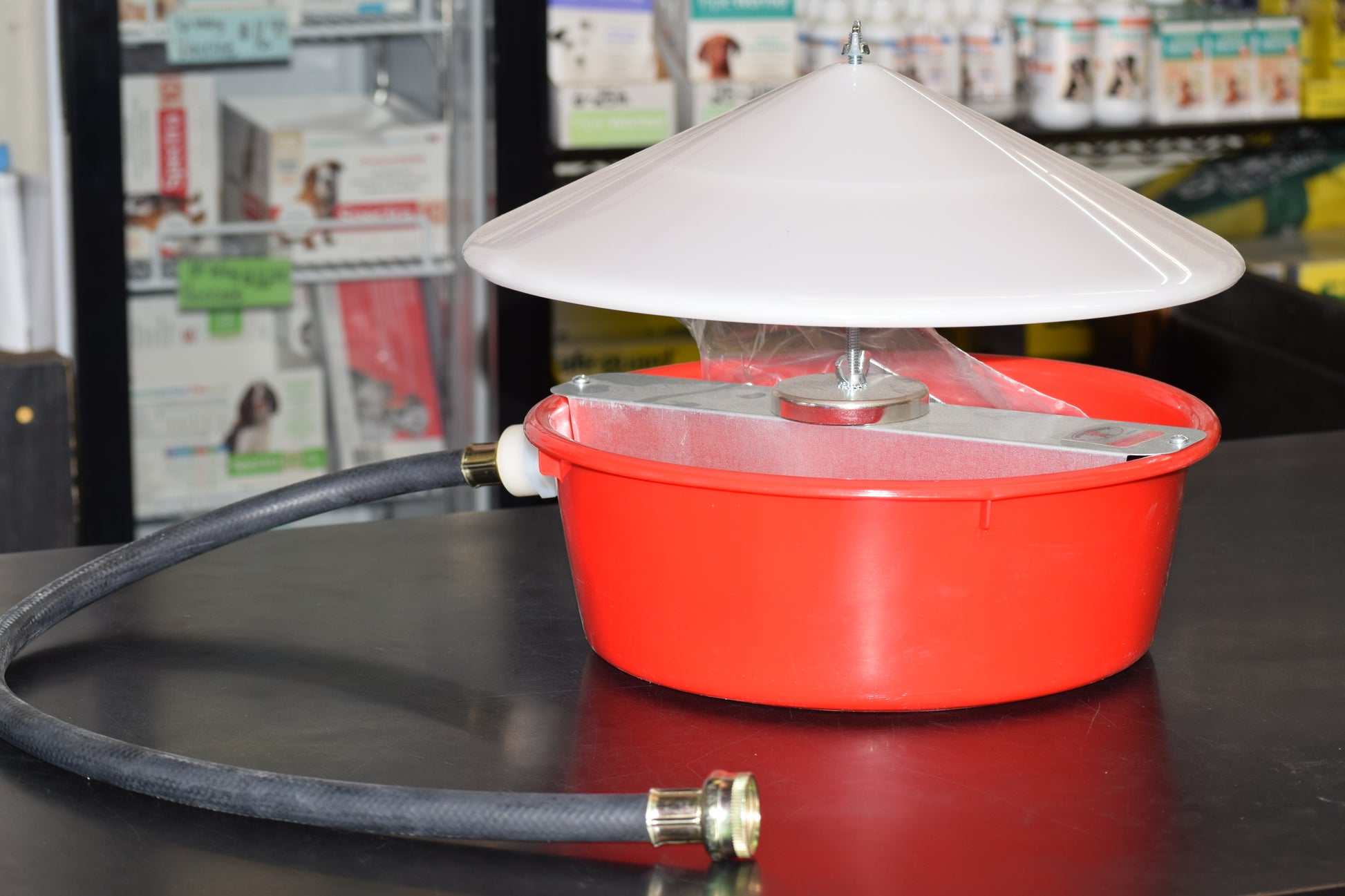 You’ll never have to carry water to your birds again with the Little Giant Automatic Poultry Waterer w/ Cover. This convenient waterer includes a 0.75-inch hose that connects easily to a standard garden hose for a continuous flow of fresh water. An automatic float controls the water level to prevent spilling or overflow, and an oversized cover extends beyond the edge of the bowl to prevent roosting and keep debris out of the water. The bowl is made of high-density polyethylene and its white polypropylene cover is attached to a metal bracket. Designed for use with adult birds—avoid using it with baby chicks—this waterer holds 5 quarts and is easy to assemble and clean.