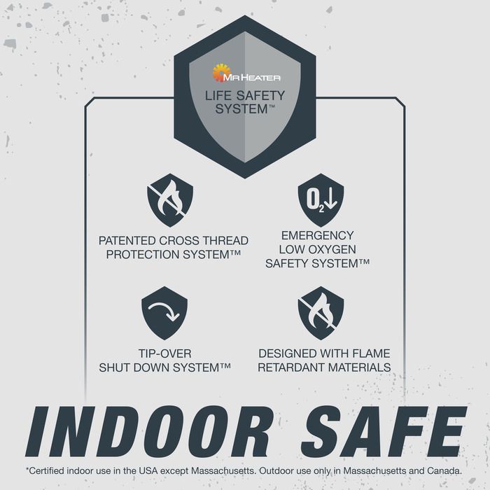 - Indoor safe radiant propane heater emits 4,000/9,000/18,000 BTU