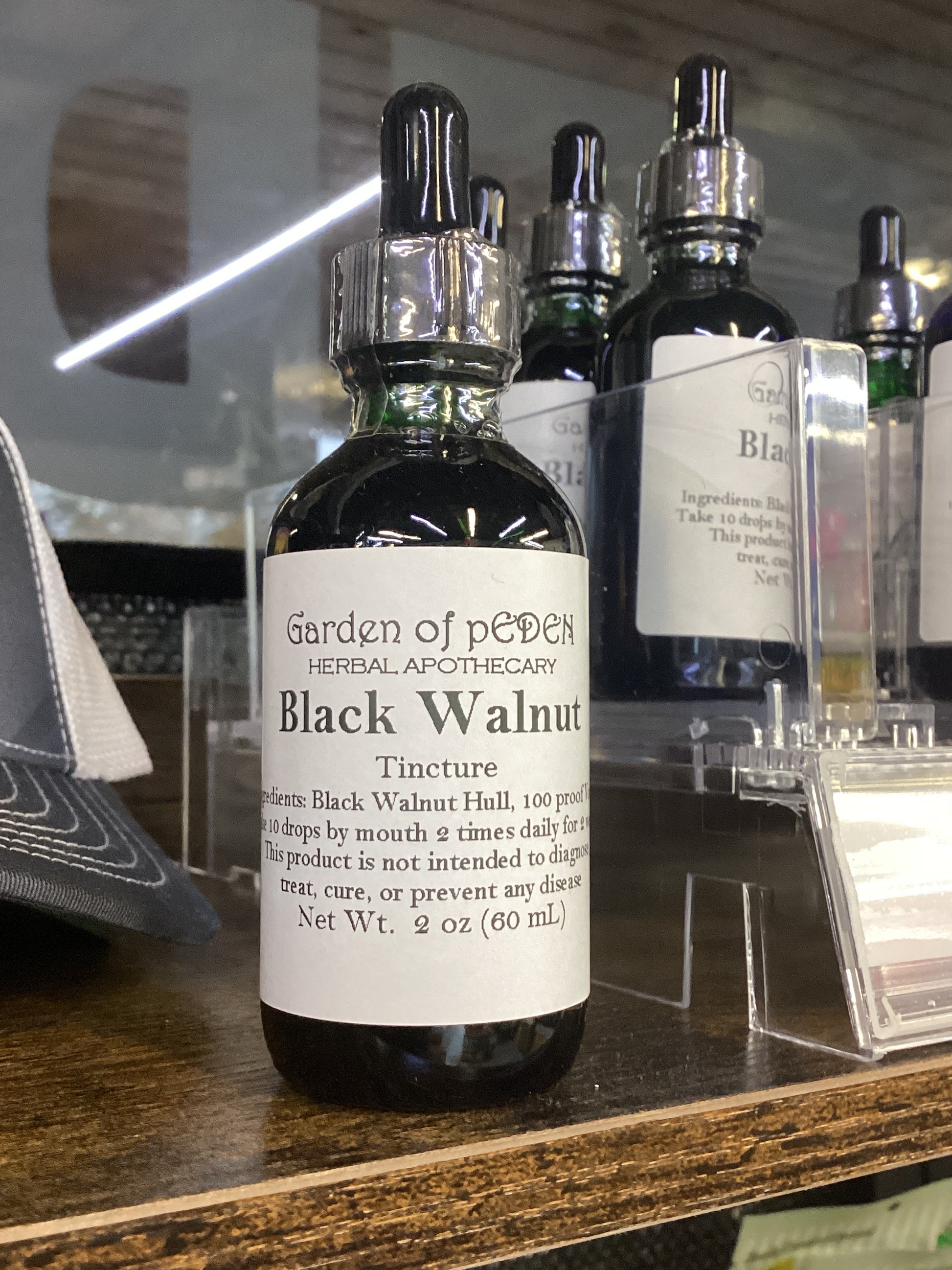 Black Walnut hulls are used to treat and prevent parasites, eczema, warts, poison ivy, inflammation of the gut, constipation, diarrhea, HIV, HPV, and viruses.
