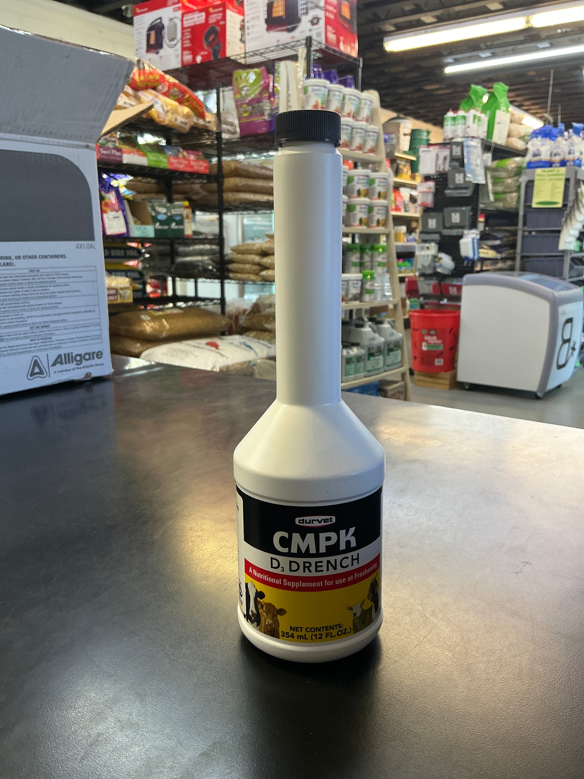 An oral Calcium, Magnesium, Phosphorus, Potassium and Vitamin D3 Supplement for use before and after freshening in dairy and beef cattle, to help maintain normal levels of these nutrients. Also suggested for sheep and goats.