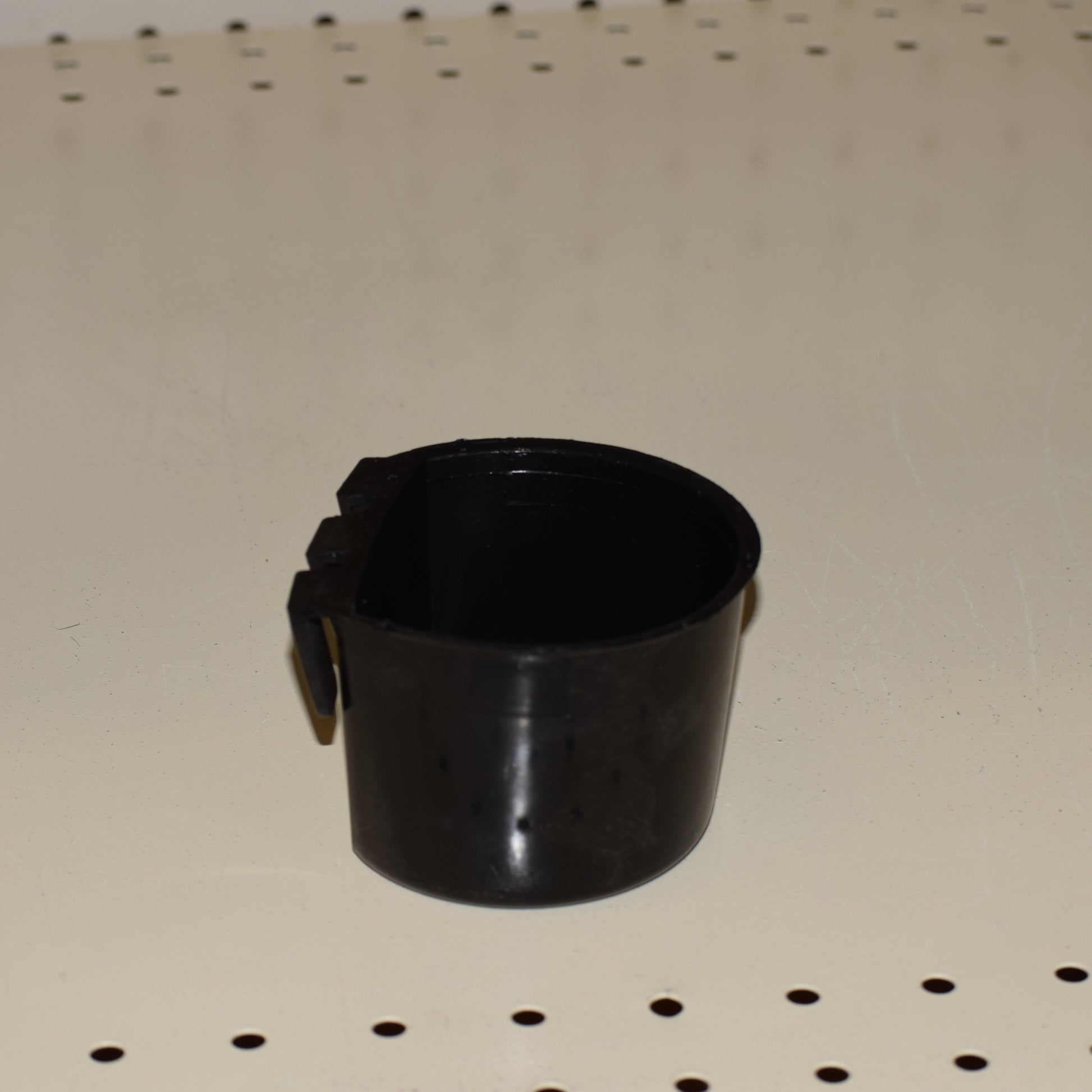 Great cup for feeding out of keep stalls or single bird pens. Makes a better temporary water cup than the #1 cup but still, an average chicken needs at least one pint of water during the hottest time of year. Hangs on wire or other thin material and is 3.25" diameter and 2.375" deep and holds 8 ounces of water. Made in the USA.