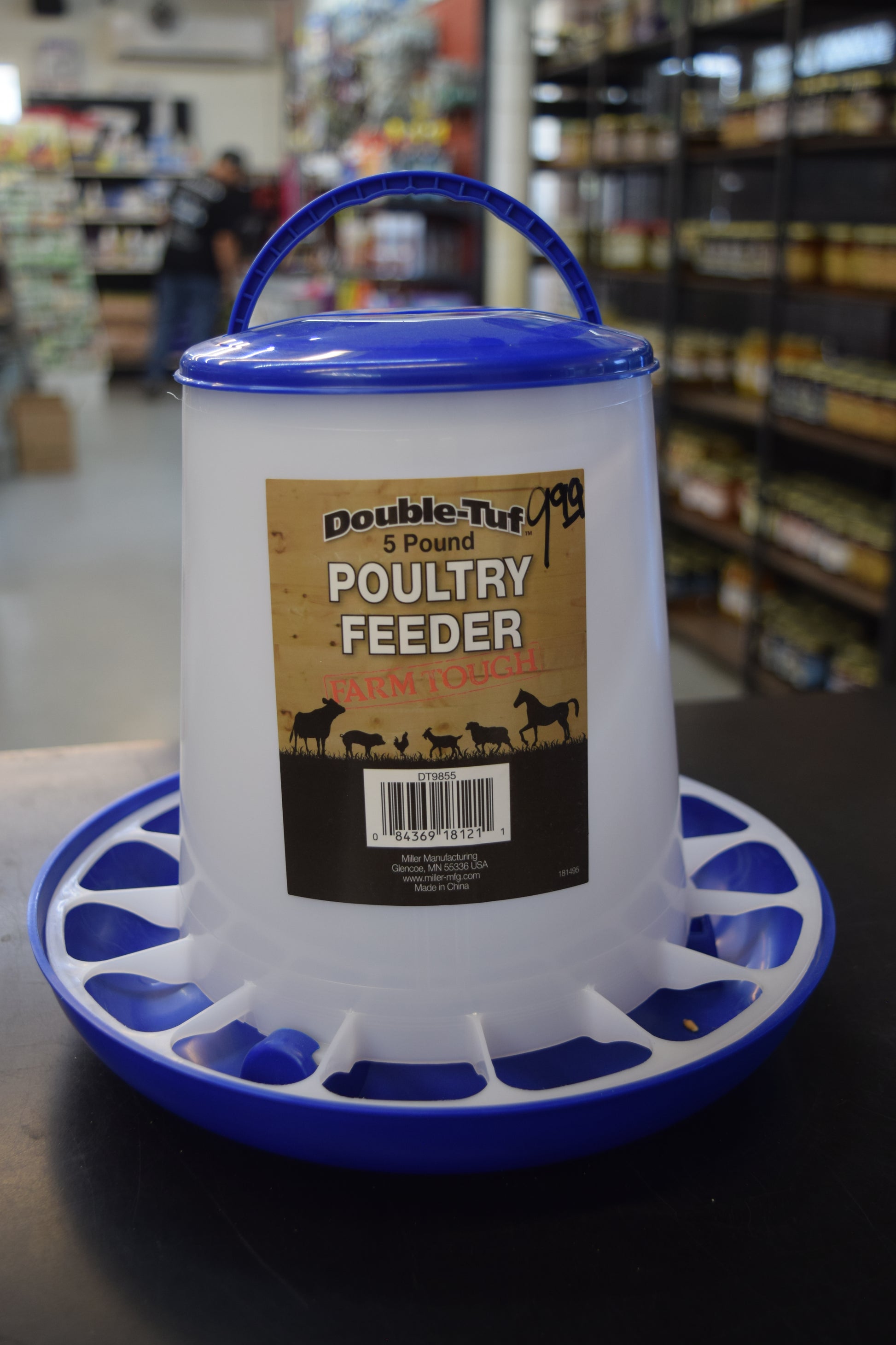 This is a great Poultry Feeder designed exclusively for the hobbyist. The built-in Feed Saver Ring minimizes spillage and prevents wasted food. Durable one-piece construction of the jar and Feed Saver Ring for quick and easy assembly. Made of impact-resistant plastic that won't rust or corrode. The included plastic lid protects the feed from the elements.
