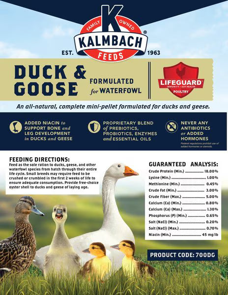 - Complete, balanced nutrition for ducks, geese, and other waterfowl in all stages of life