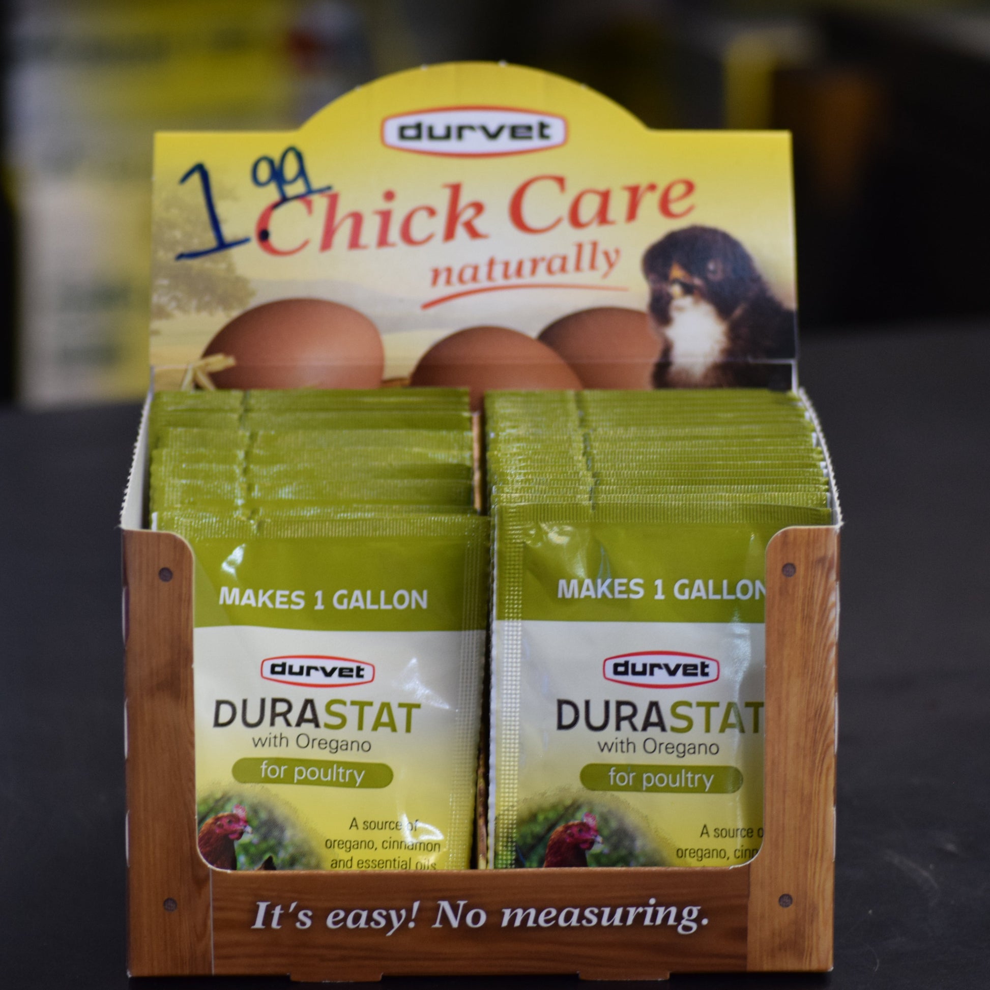 Durvet DuraStat with Oregano is a source of energy and essential oils to stimulate water consumption and appetite during disease conditions, shipping, weather change or stress. All natural alternative to antibiotics. 1 pack per gallon water
