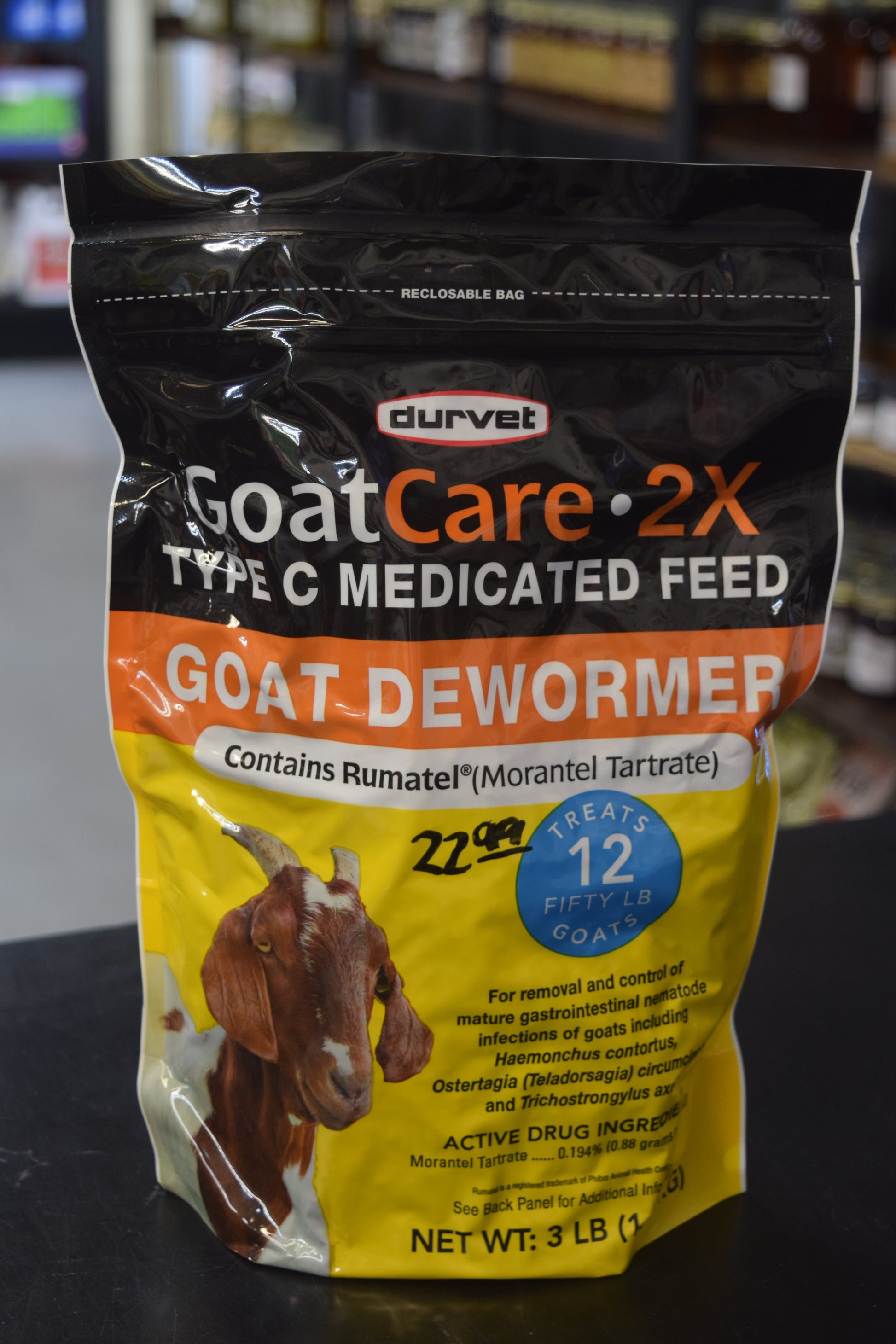Keep your goats healthy and happy with Durvet GoatCare 2X Goat Dewormer! This medicated dewormer is specially formulated to kill the three major gastrointestinal parasites in goats: Haemonchus contortus, Ostertagia circumcincta, and Trichostrongylus axei. It’s safe to feed to all classes of goats, including meat and dairy goats, as well as pregnant and lactating does when used as directed. Each bag comes with a four-ounce scoop for easy and accurate dosing.