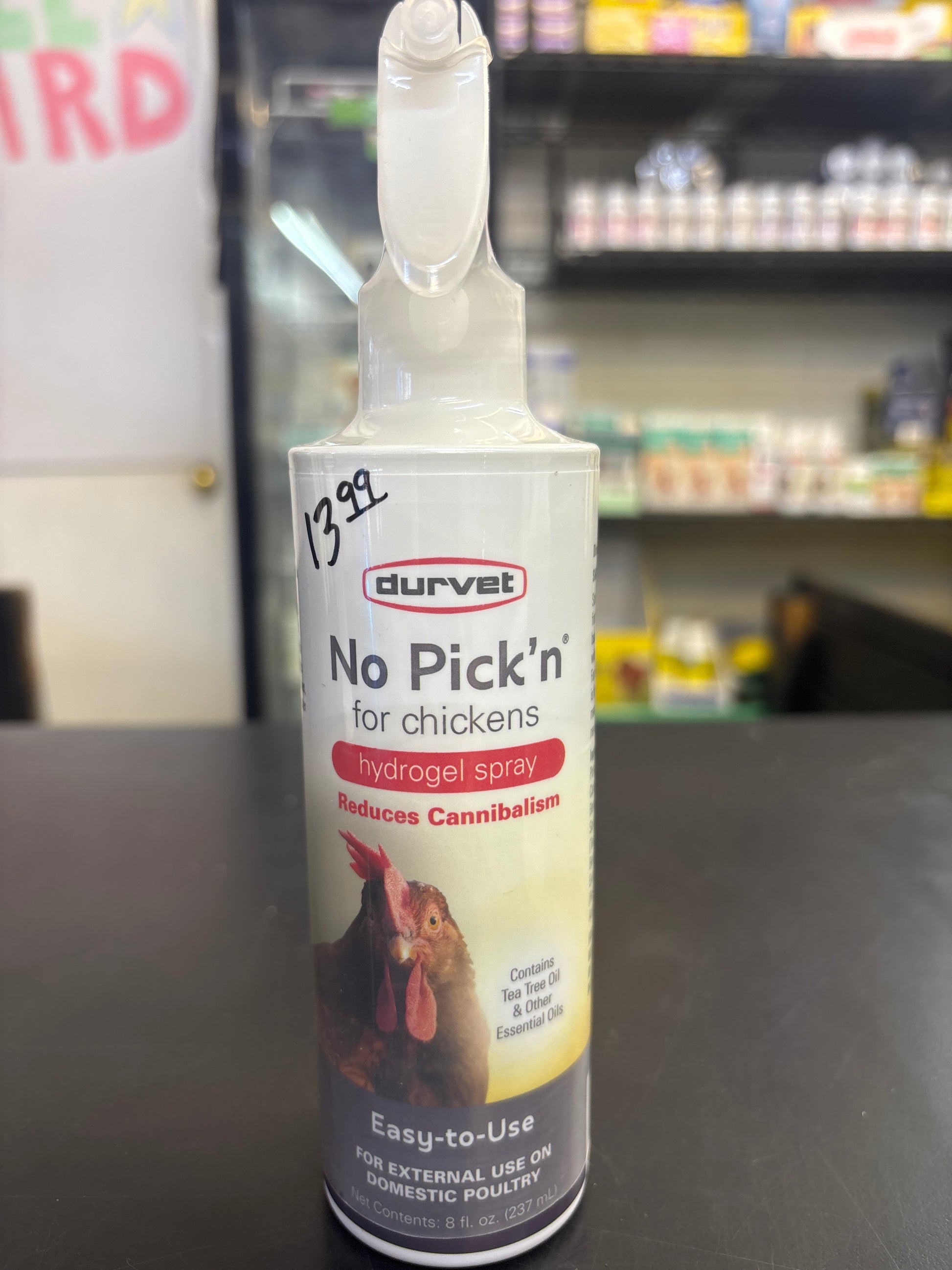 No Pick'n® for Chickens hydrogel spray with tea tree oil & other essential oils is used to reduce pecking and cannibalism in chickens.