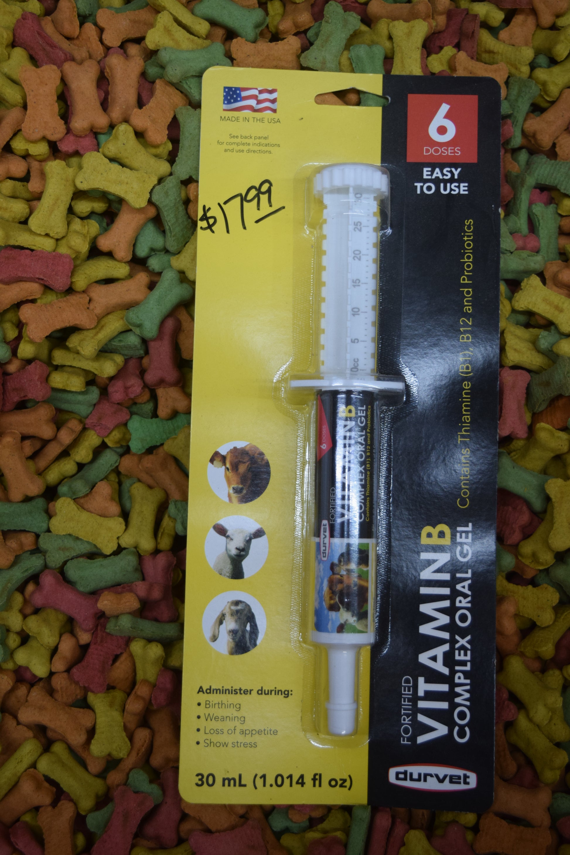 For use as a supplemental source of B Complex Vitamins in Goats, Sheep and Calves. Fortified to support appetite, digestion and energy levels. Administer during kidding, vaccinating, post antibiotic, deworming, weaning, diminished feed intake and other stressful events. In a “Real Gel” base, Fortified Vitamin B Complex Gel melts at body temperature for ease in administration.