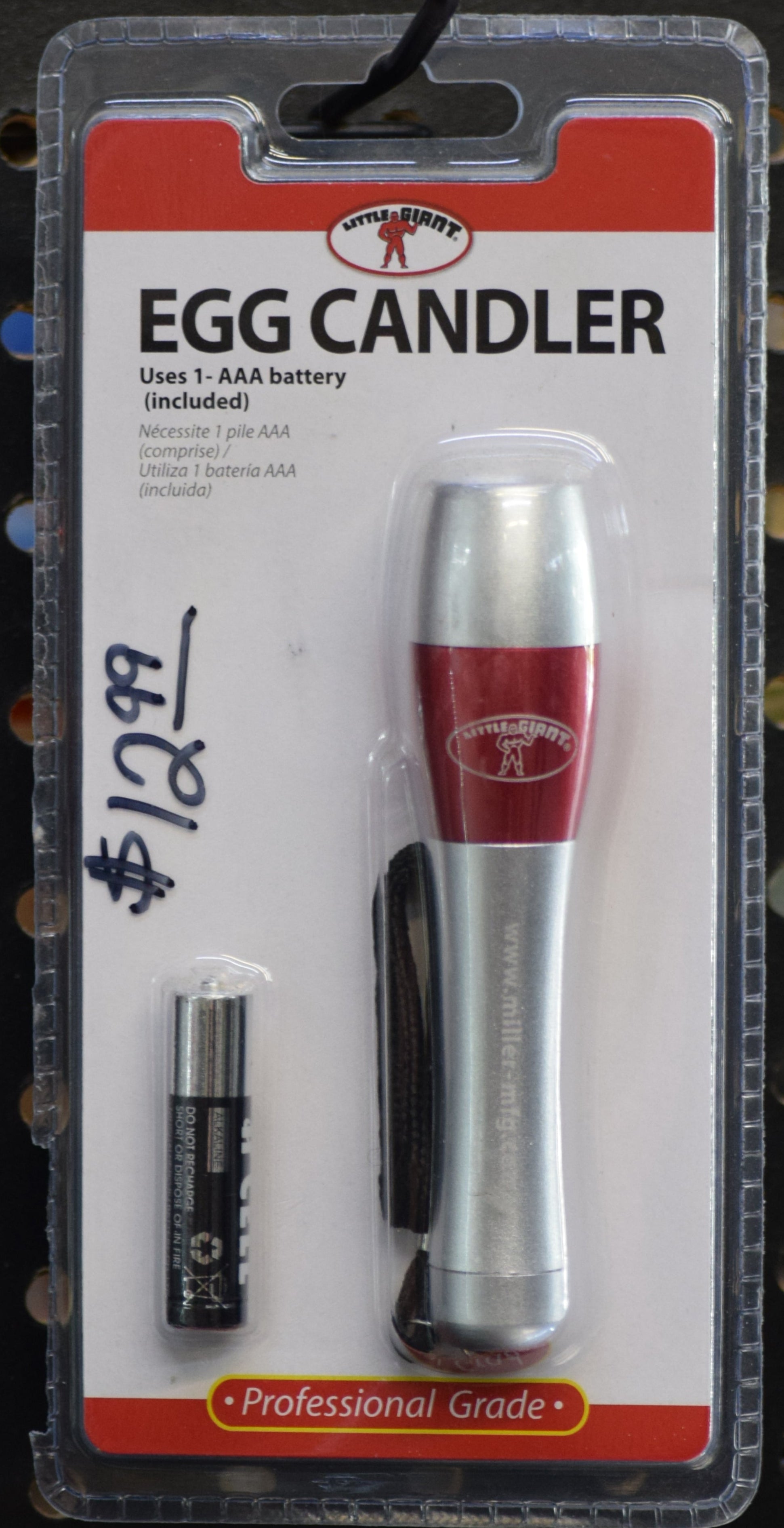 Quickly and easily check the development of eggs using this lightweight candler. This battery-operated light features a bright, energy-efficient LED bulb that runs cooler than traditional bulbs. The convenient cord-free design fits easily in a pocket and features a wrist strap. Uses one AAA battery (included).