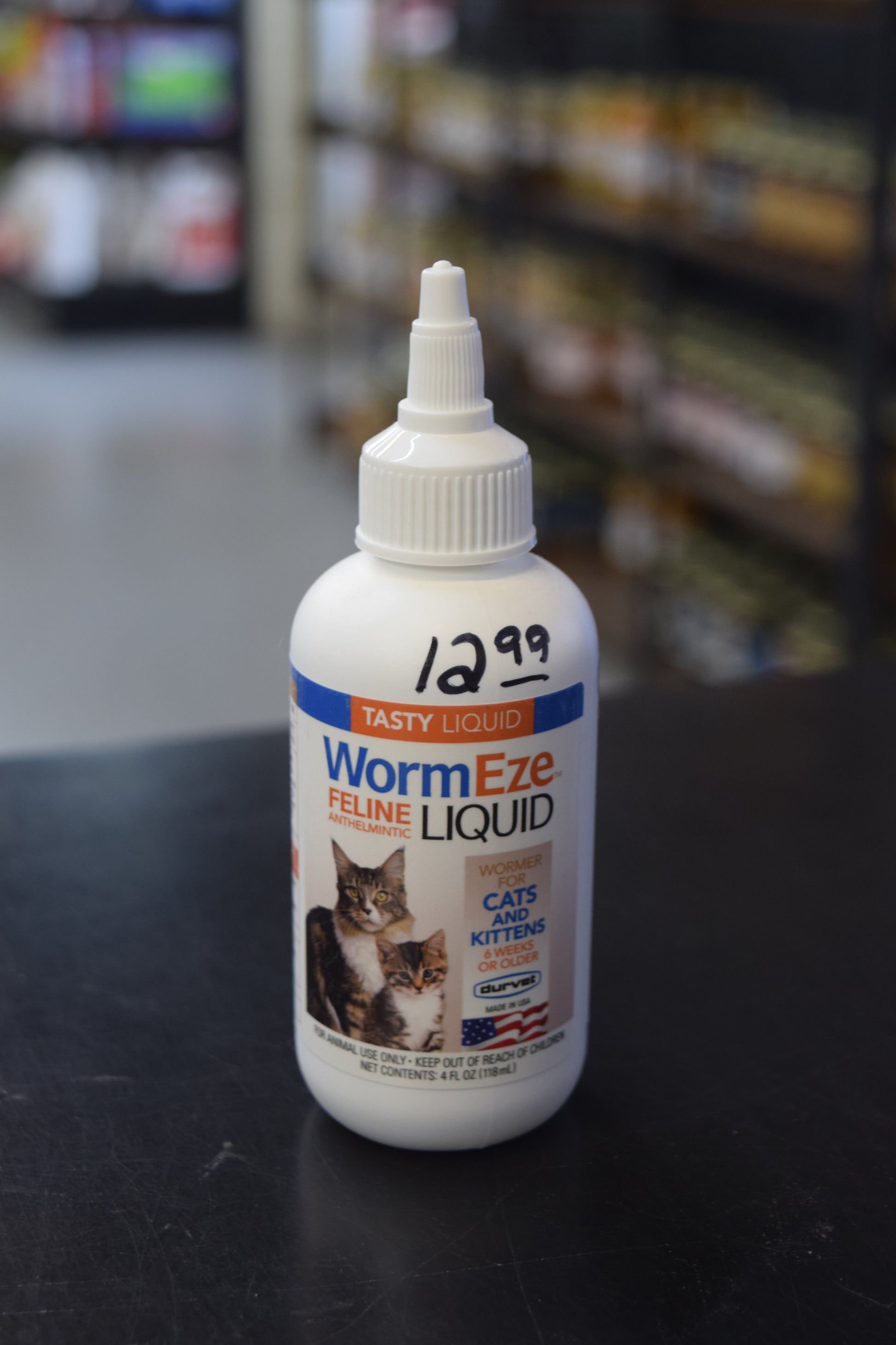 Durvet WormEze Feline Liquid for use in food or drinking water for the removal of large roundworms ascarids Toxocara canis, Toxocara cati, Toxascaris leonina. The presence of these parasites should be confirmed by laboratory fecal examination. Consult your veterinarian for assistance in the diagnosis, treatment and control of parasitism. For use on : Cats and kittens over 6 weeks of age. For control and removal of large roundworms, the most prevalent intestinal parasite to afflict cats of any age. Easy to use, may be added directly to cat's water or food. Safe for kittens over 6 weeks of age. Very palatable.