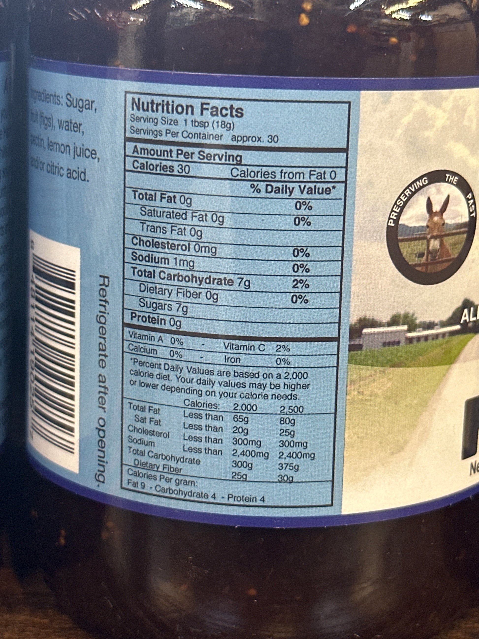 Sugar, figs, water, pectin, lemon juice, citric acid