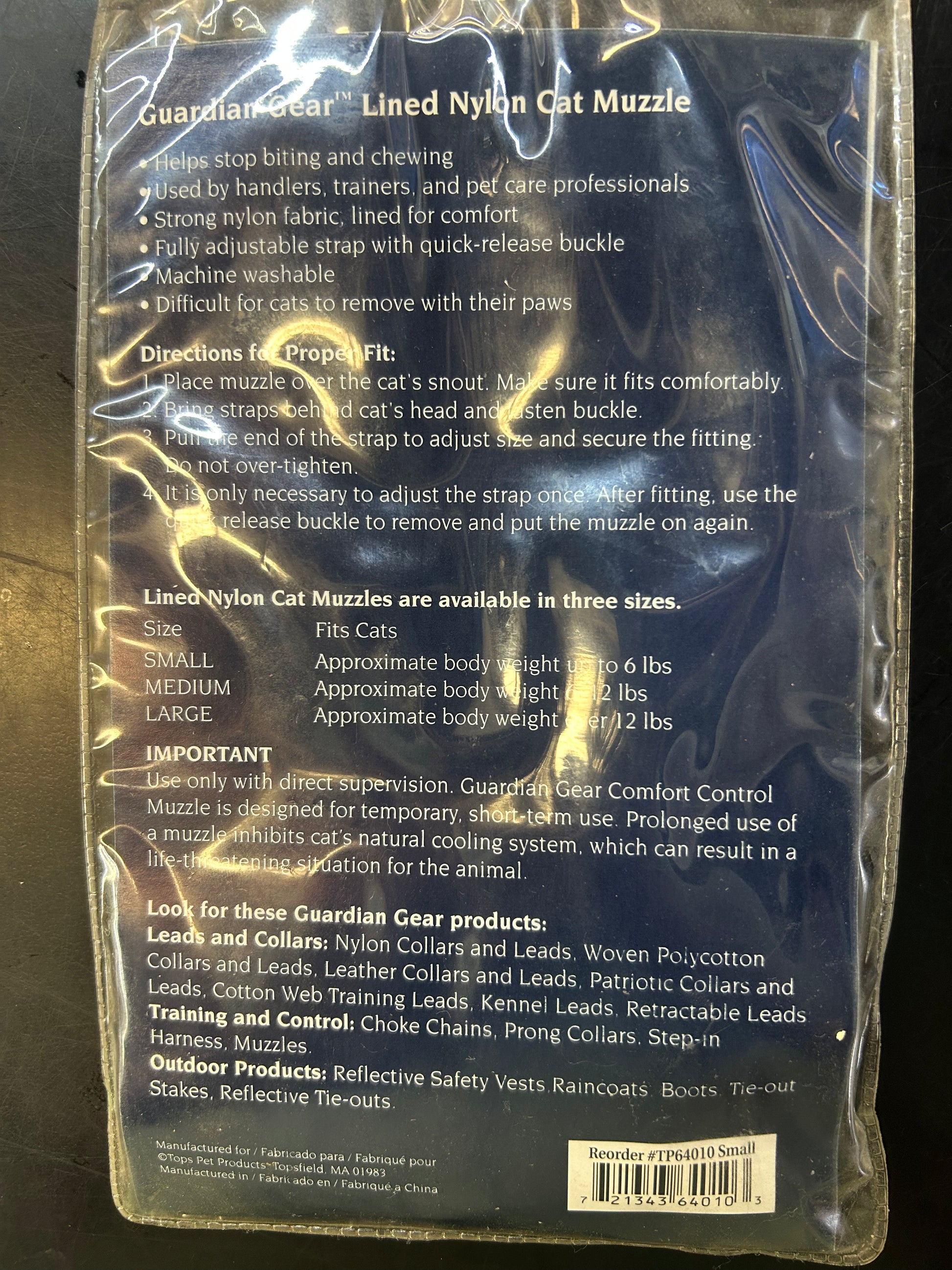 Guardian Gear Fashion Cat Muzzles help stop biting and chewing.