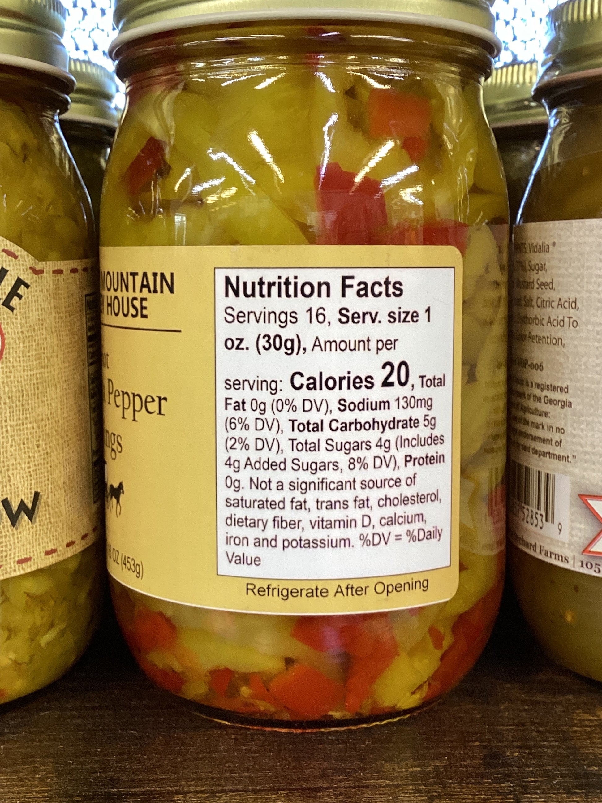 Ingredients: pickling liquid (water, sugar, vinegar, salt, calcium chloride), banana peppers, red peppers