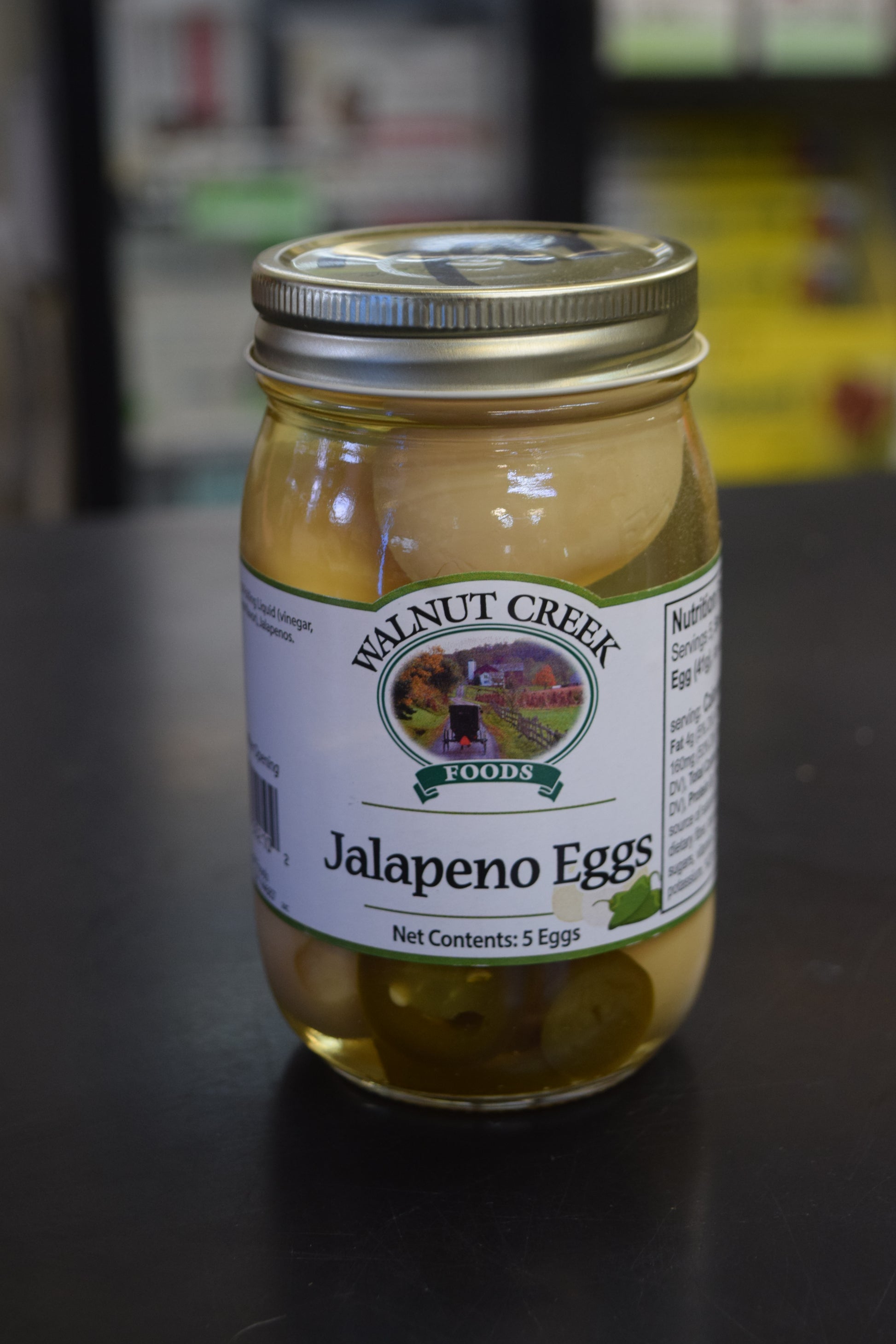 Ingredients: eggs, pickling liquid (vinegar, sugar, water, natural flavor) Jalapenos