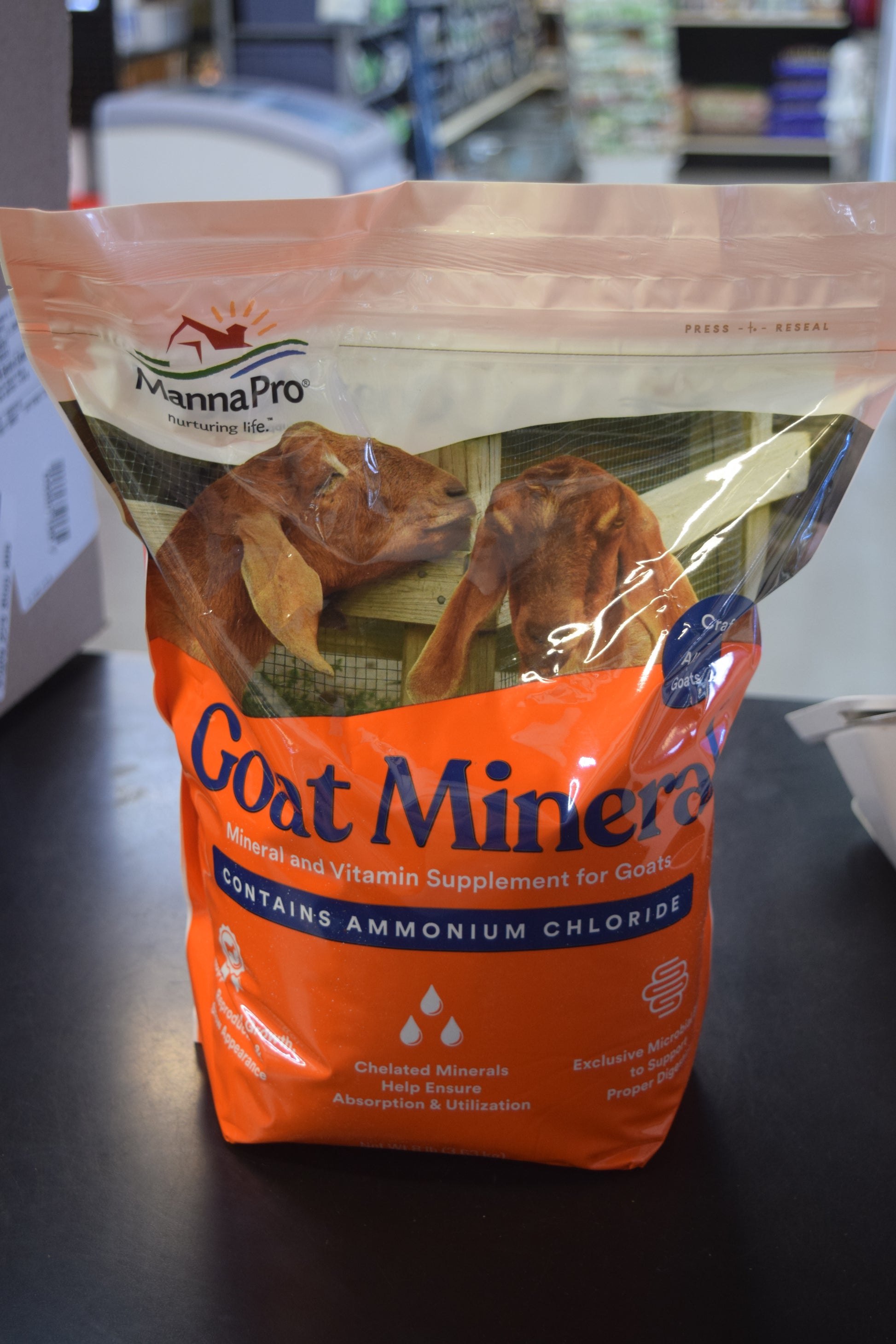 Feed Manna Pro Goat Mineral at the rate of ¼ to ½ ounce per goat per day. If Goat Mineral is offered free choice, daily consumption must be monitored, and the location of the mineral feeder managed to obtain the desired ¼ to ½ ounce daily feeding rate. Use Manna Pro Goat Mineral as the only source of free choice salt. Provide plenty of fresh, clean water at all times.