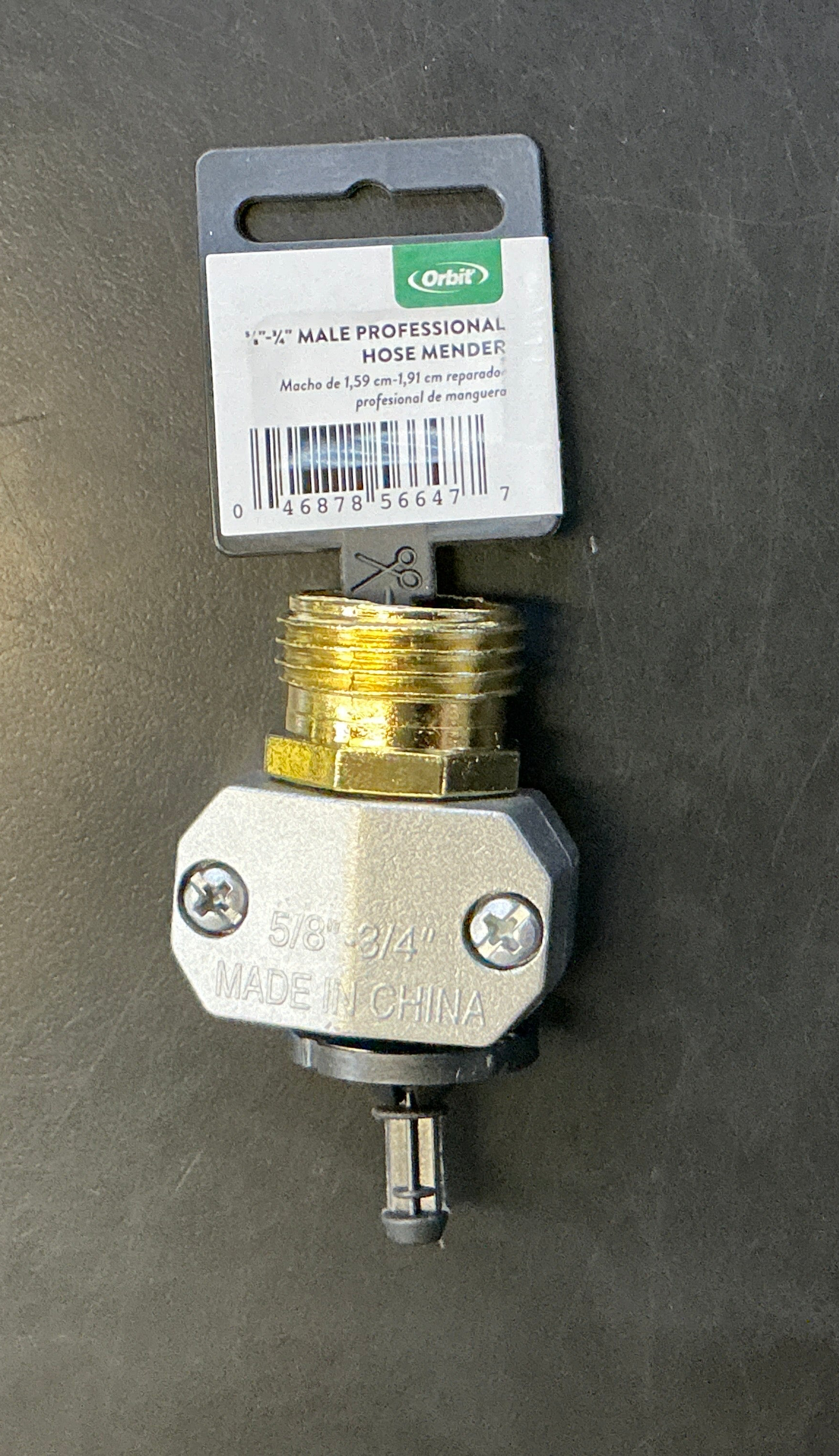 Metal Male Hose Mender. It is made of metal & zinc and fits 5/8” - 3/4" hose.