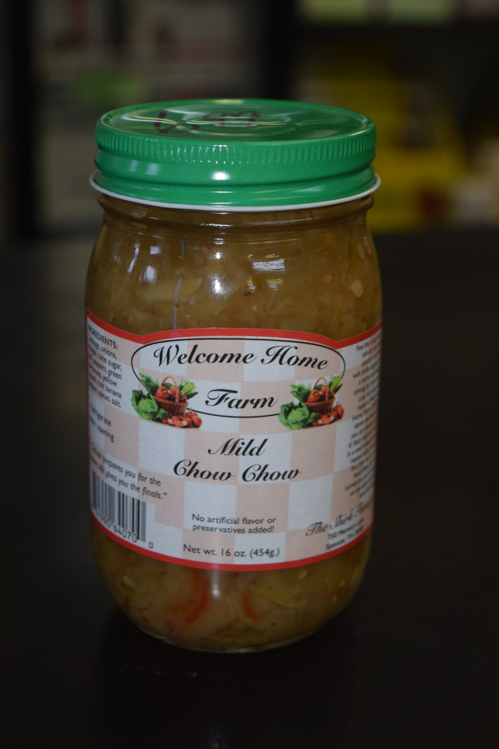 Ingredients: Cabbage, onions, vinegar, cane sugar, bell peppers, green tomatoes, yellow squash, hot banana pepper, spices, salt