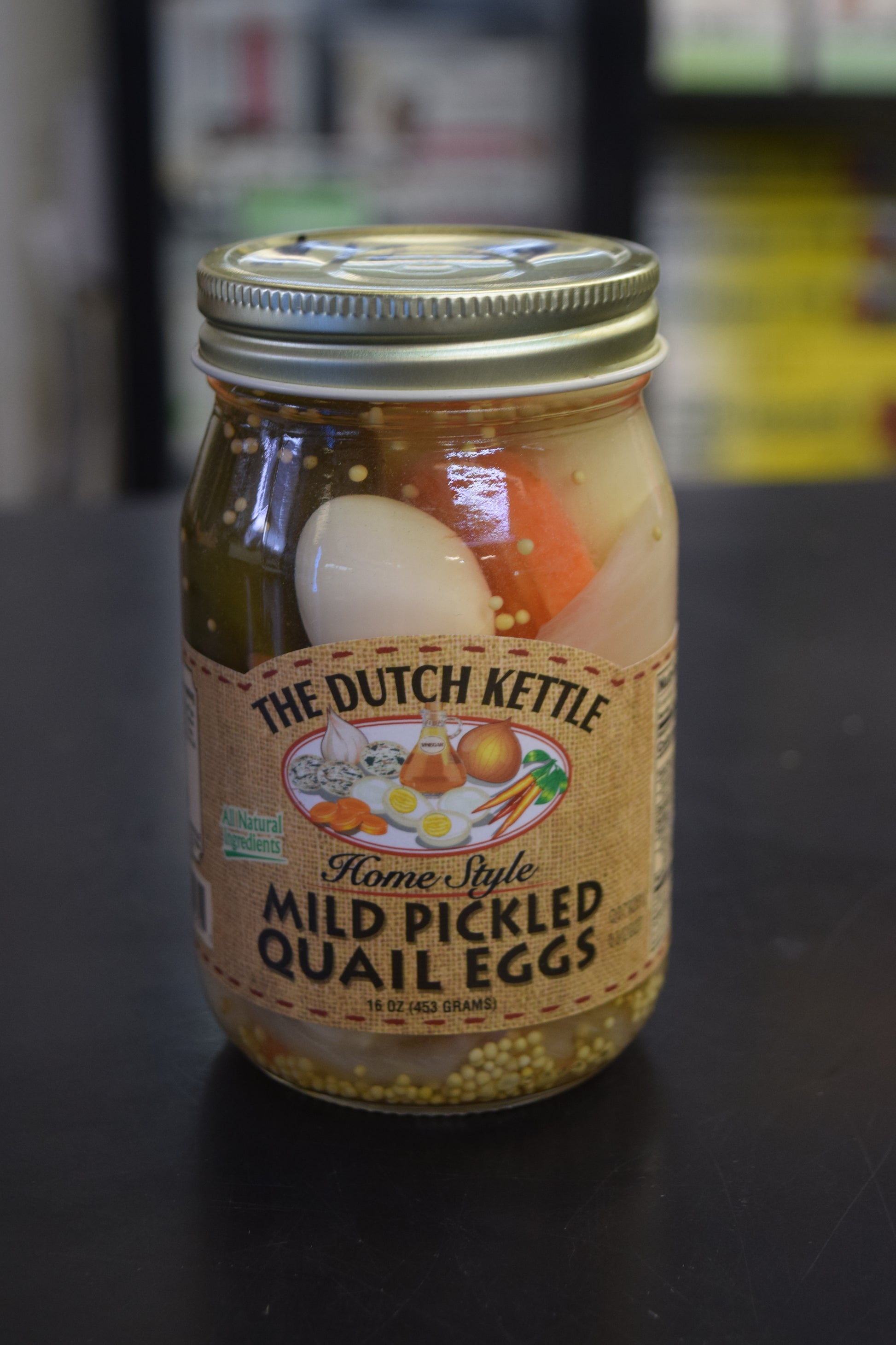 Quail eggs (quail eggs, water, salt, citric acid, potassium sorbate) , Water,onions, vinegar, carrots, jalapenos, muster seed, salt