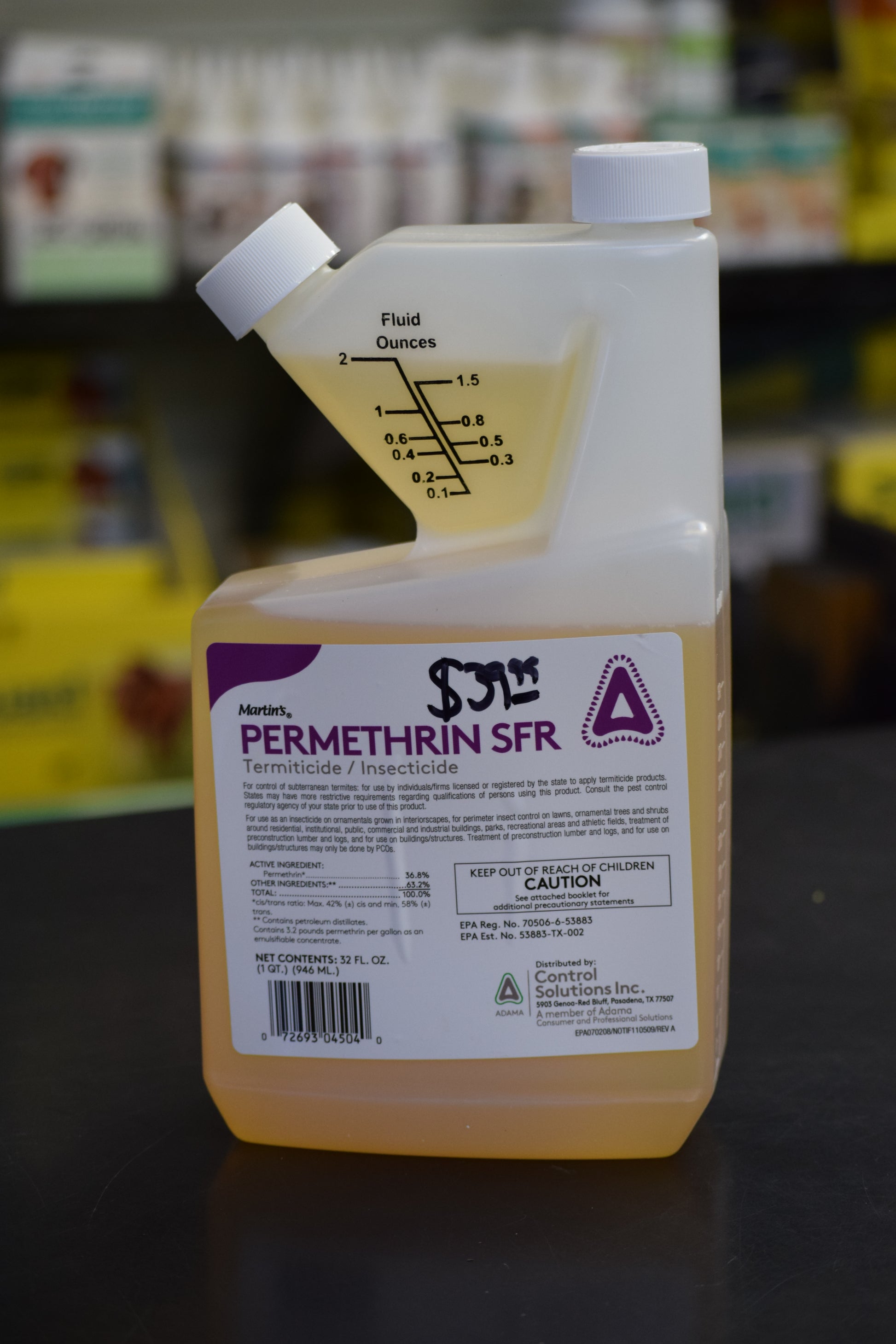 Permethrin SFR 36.8%, manufactured by Control Solutions Inc., is a broad-spectrum insecticide designed to provide a quick knockdown and residual barrier for about 90 days indoors and 30 days outdoors to control over 75 different types of insects.