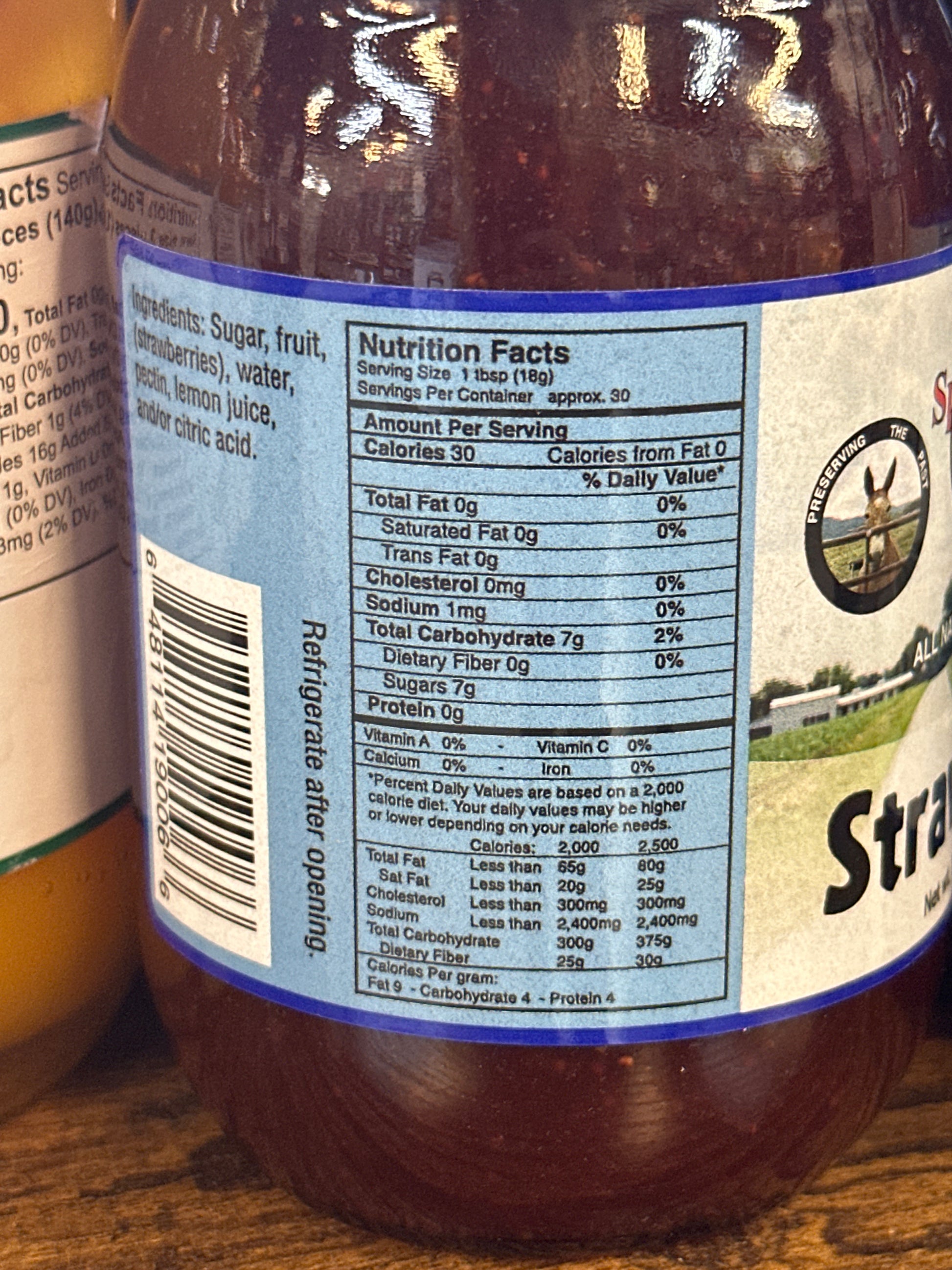 Sugar, fruit, water, pectin, lemon juice, citric acid