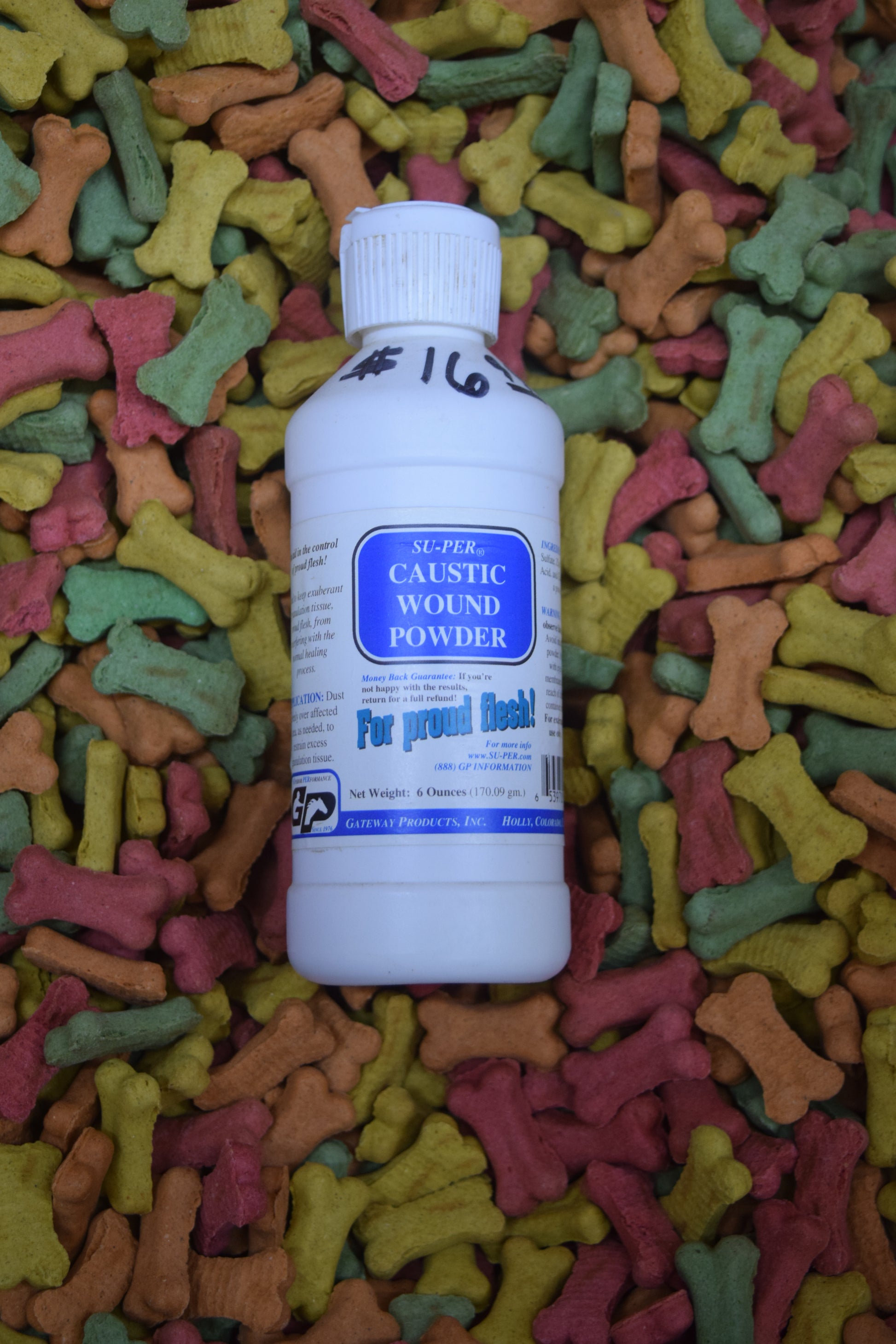 Caustic Wound Powder-Used to keep exuberant granulation tissue, proud flesh, from interfering with the normal healing process. Dust evenly over affected area, as needed, to restrain excess granulation tissue.