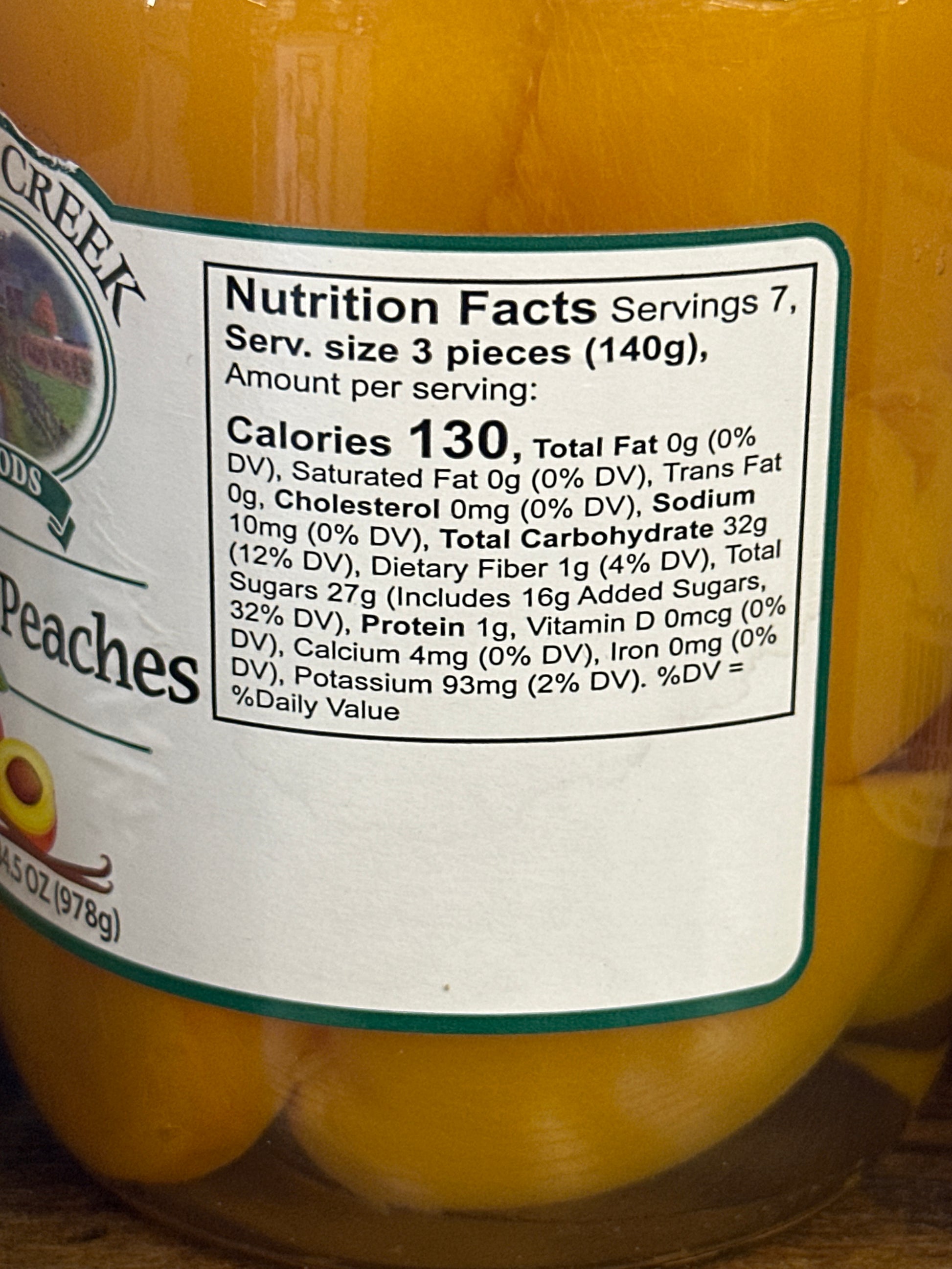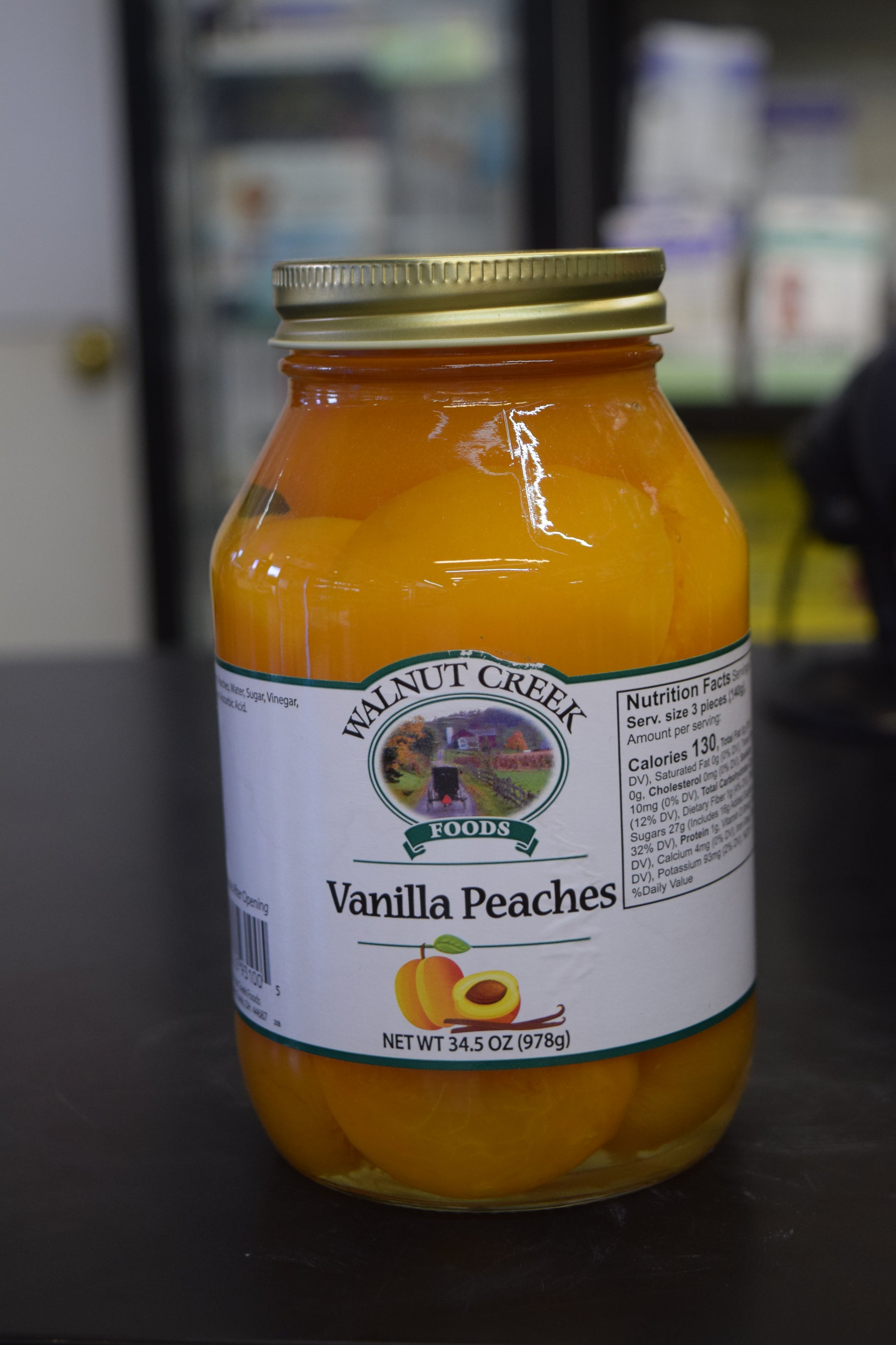 Peaches, water, sugar, vinegar, vanilla flavor, ascorbic acid