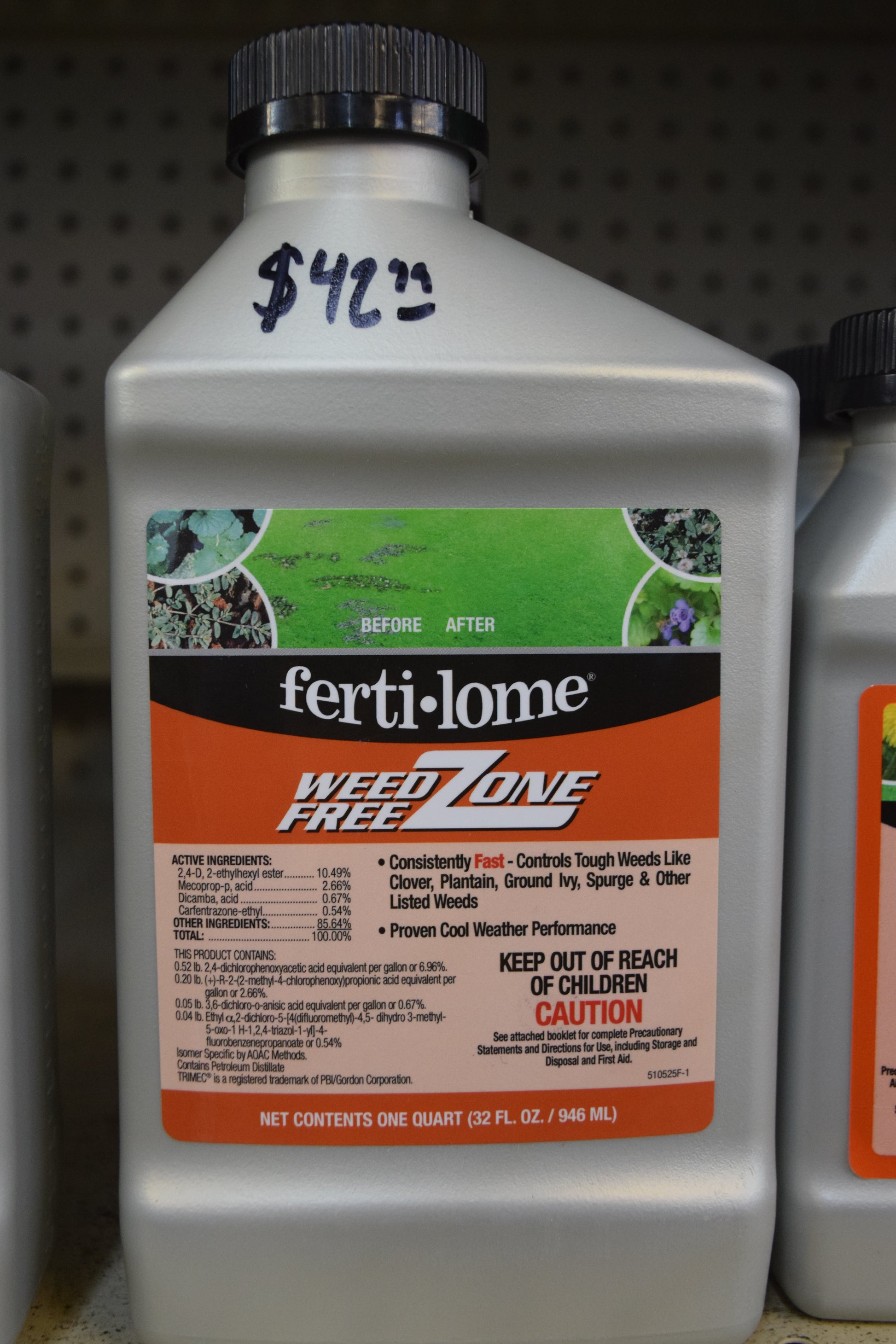 Ferti-lome Weed Free Zone gets rid of weeds fast. It's a professional formulation, so it's strong enough to kill mature weeds in your lawn. Weed Free Zone controls over 80 of the toughest-to-control broadleaf weeds including clover, bindweed, spurge, chickweed, dandelion, henbit, oxalis, poison ivy, purslane, shepherd's purse, thistle, black medic, Virginia buttonweed, wild onion and many others. Use it in fescue, Kentucky bluegrass, ryegrass, Bermudagrass, zoysia, and buffalograss - without harming the grass. Concentrated formula (mix with water as directed on product label). 1 gallon treats approximately 1,000 sq. ft. Mix up to 2 oz. per gallon of water and apply using a sprayer. Also Available in smaller sizes