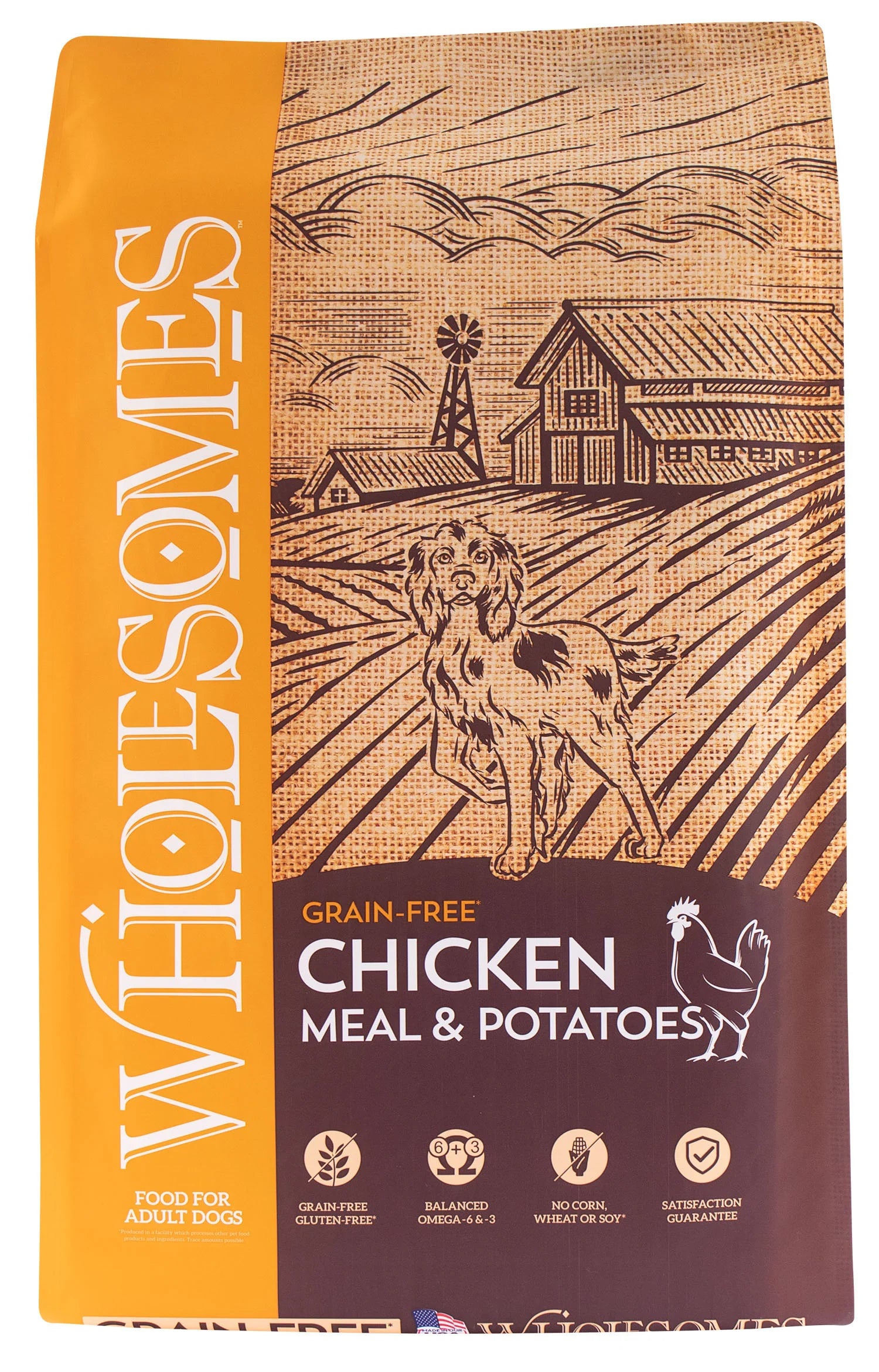 Ingredients: Chicken Meal, Potatoes, Peas, Chicken Fat (Preserved with Mixed Tocopherols), Chickpeas, Pea Fiber, Sweet Potato, Natural Flavor, Flaxseed, Apples, Blueberries, Cranberries, Carrots, Spinach, Salt, Potassium Chloride, Choline Chloride, DL-Methionine, Taurine, Vitamins [Vitamin E Supplement, Niacin, Calcium Pantothenate, Vitamin A Supplement, Riboflavin Supplement, Thiamine Mononitrate, Pyridoxine Hydrochloride, Biotin, Vitamin B12 Supplement, Vitamin D3 Supplement, Folic Acid], Minerals [Zinc Sulfate, Ferrous Sulfate, Copper Sulfate, Manganese Sulfate, Zinc Proteinate, Copper Proteinate, Manganese Proteinate, Sodium Selenite, Calcium Iodate, Cobalt Carbonate], Rosemary Extract.